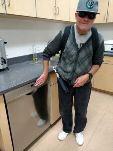 Thanks to the Knights of Columbus Council #3947, the Blind Community Center has a new dishwasher. BCCSD member Michael Aicinena is also a member of the Knights of Columbus Council #3947 and he mentioned the BCCSD’s needs to his organization. The BCCSD has been transitioning to Corelle dishes, ceramic coffee mugs and stainless-steel cutlery for our lunch program. High water temperatures in our new dishwasher will leave dishes sanitized and we can be more energy and water efficient. The BCCSD will also help save the environment by cutting down on disposable paper and plastic. Thank you, Knights of Columbus Council #3947! Photos of Michael and the new dishwasher.